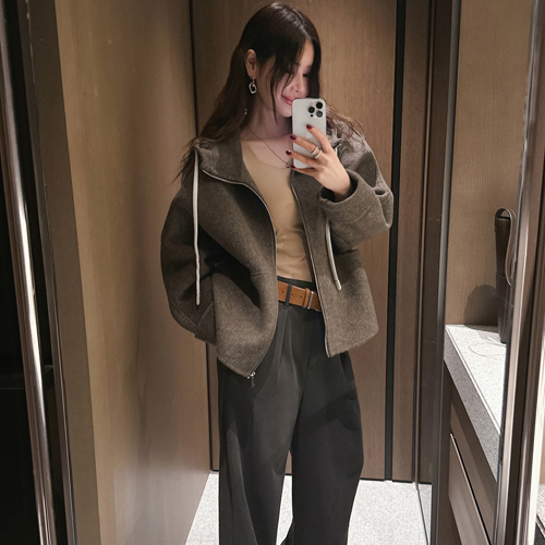 Column string wool hood zip-up