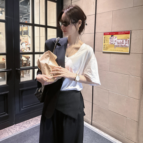 Over V-neck short sleeve tee