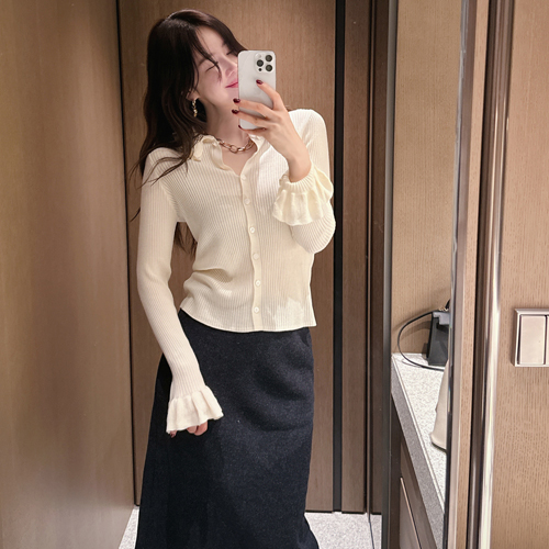 Vein frill collar cardigan